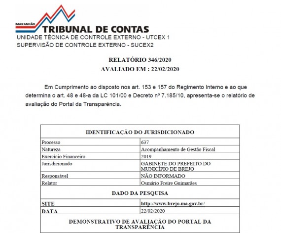 O portal da transparência é uma ferramenta fundamental para garantir esse direito e é com grande alegria que informamos o resultado da avaliação do Portal da Transparência em que constata-se que a Prefeitura Municipal de Brejo CUMPRE com as exigências de transparência previstas no art. 48, incisos II e III, c/c o art. 48-A da Lei Complementar nº 101/2000.